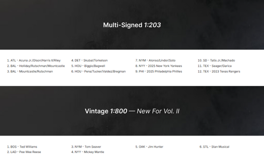 •Collect a piece of history from legendary names like Mickey Mantle, Ted Williams, Catfish Hunter, Pee Wee Reese and Stan Musial!