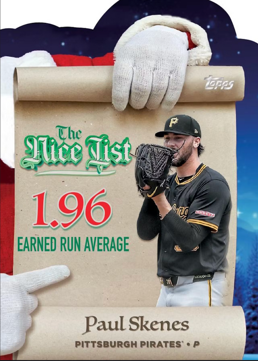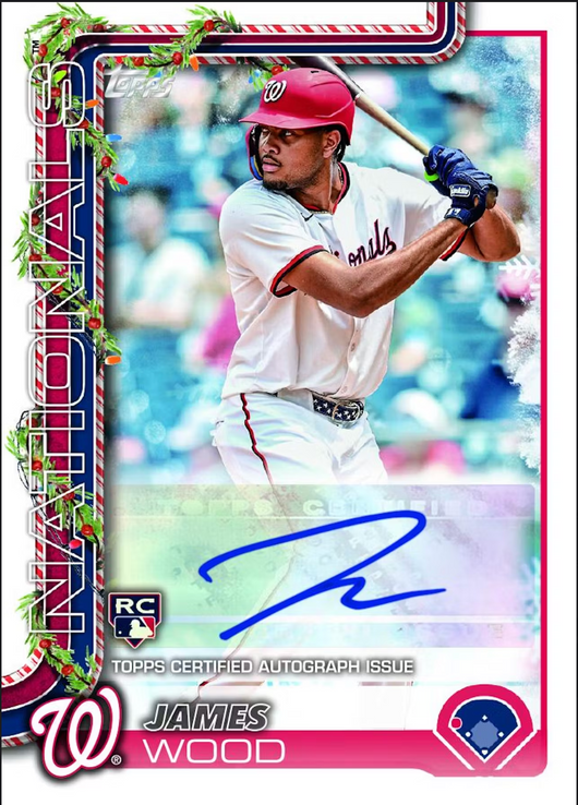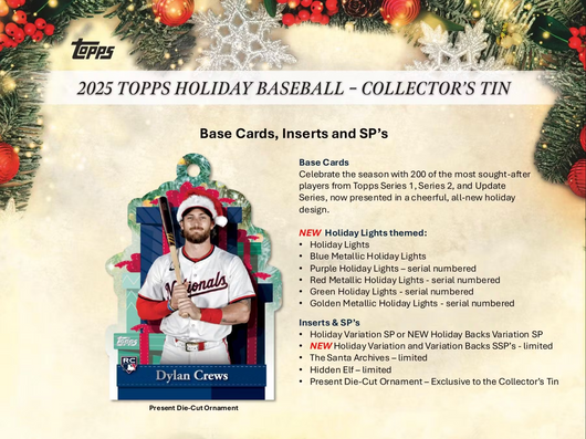 Celebrate the season with 200 of the most sought-after players from Topps Series 1, Series 2, and Update Series, now presented in a cheerful, all-new holiday design.