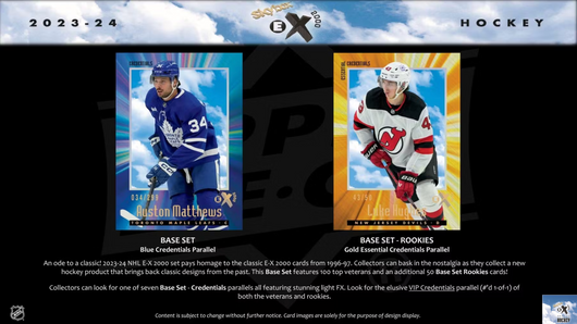 - An ode to a classic! 2023-24 NHL E-X 2000 set pays homage to the classic E-X 2000 cards from 1996-97. Collectors can bask in the nostalgia as they collect a new hockey product that brings back classic designs from the past.